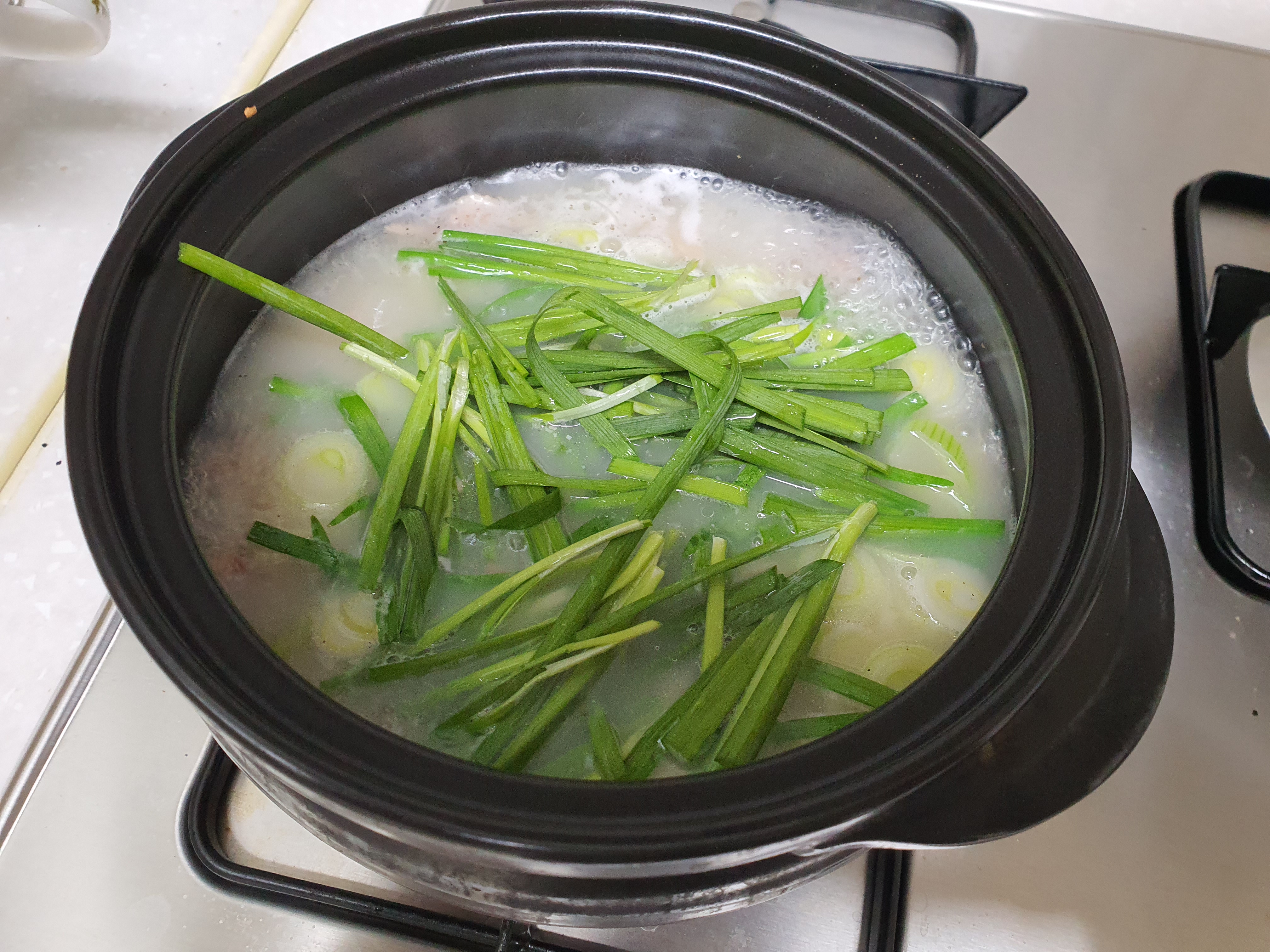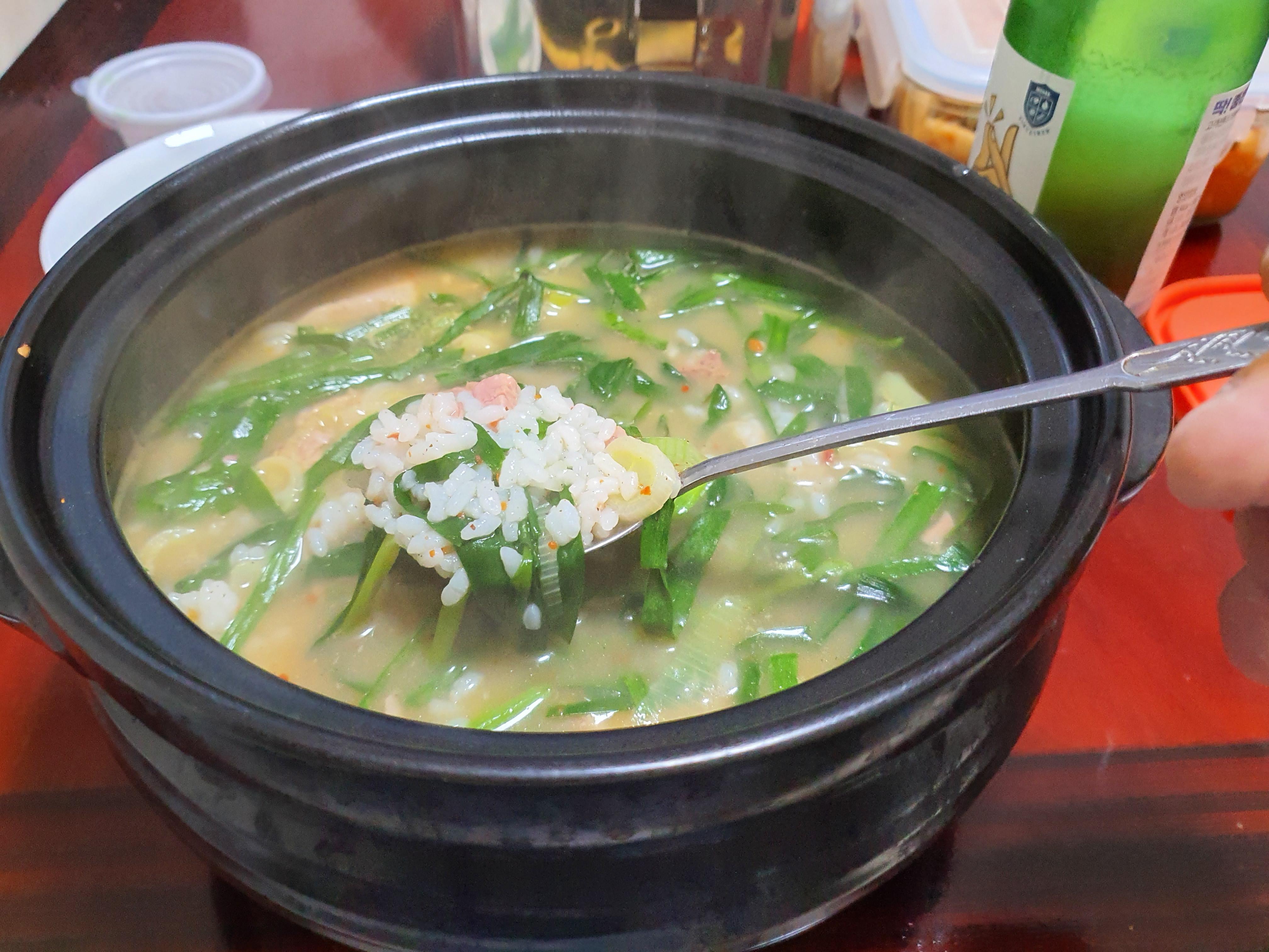 국밥인지라 분위기 낸다고 저는 뚝배기에 데워 봅니다.